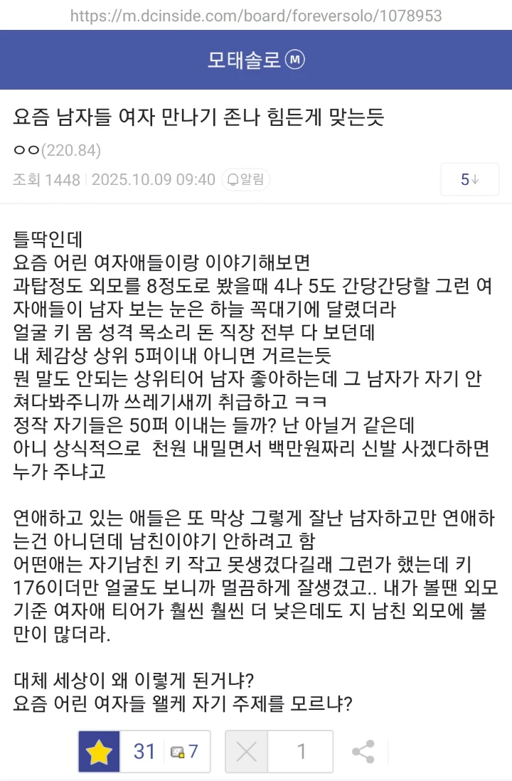 열람중 요즘 남자들 여자 만나기 ㅈㄴ 힘든 게 맞는 듯 등급아이콘 레벨아이콘 커뮤관리자 12:44 57