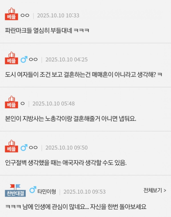 열람중 지방 매매혼 진짜 심각하네요... 등급아이콘 레벨아이콘 커뮤관리자 18:19 67