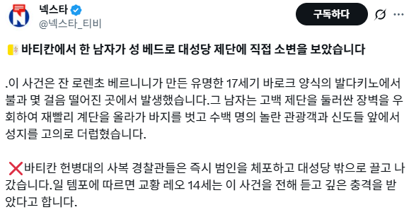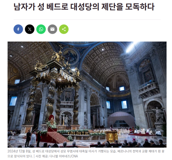 바티칸 성 베드로 대성당 제단에 소변 테러