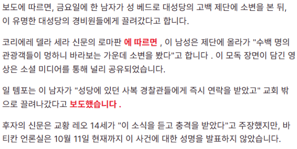 미사 도중 소변 테러가 발생..