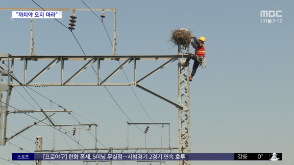 꾸준히 전신주의 까치집을 제거함과 동시에