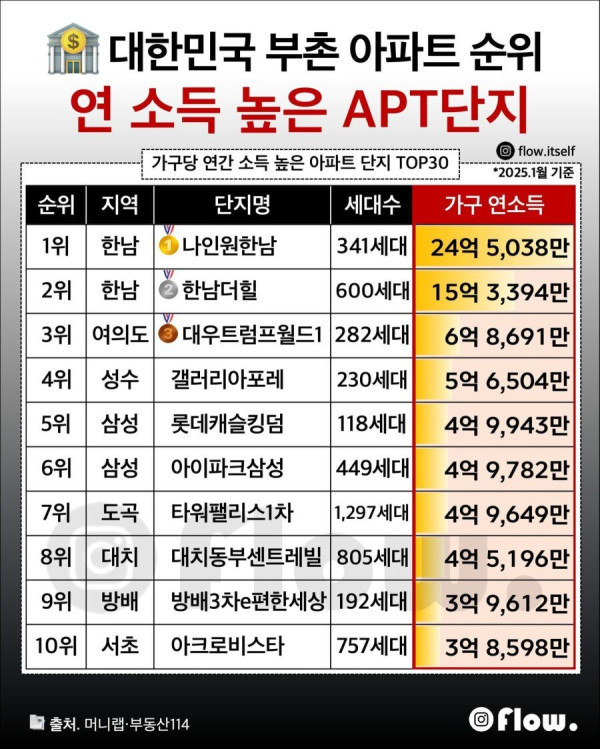 대한민국 부촌 아파트 단지 순위