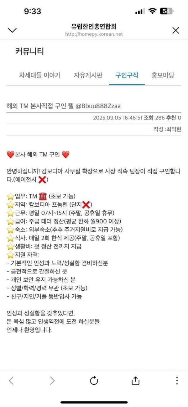 캄보디아 구인구직 글 ㄷㄷㄷ