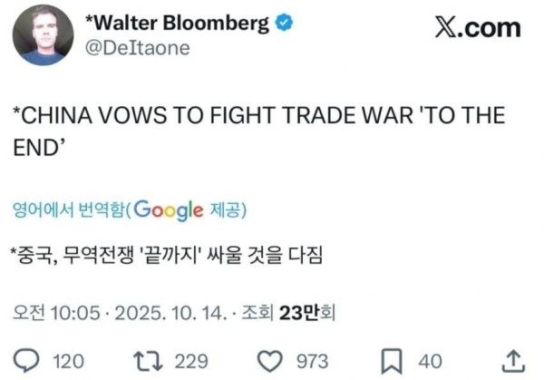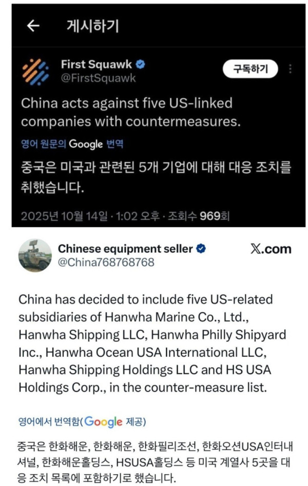 [속보] 중국, 미국 보복조치로 한국 기업만 공격