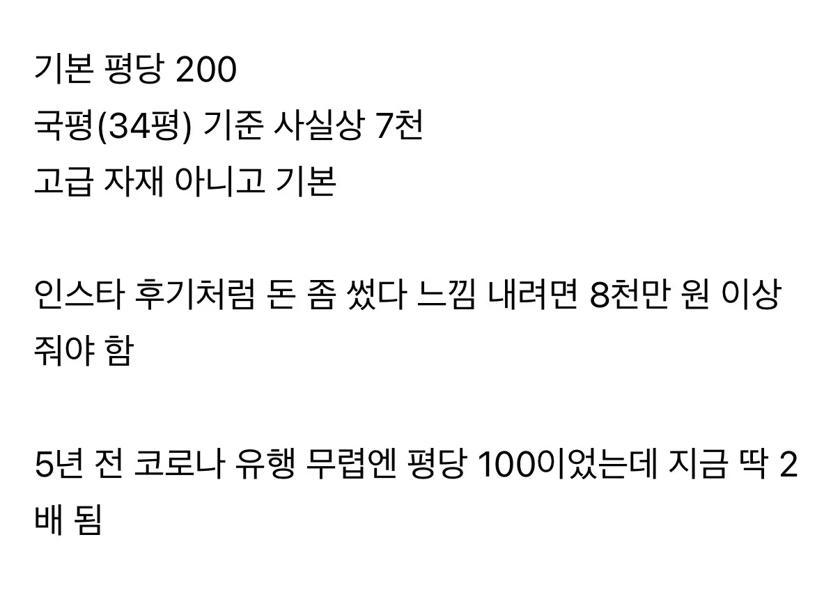 요즘 말도 안 된다는 인테리어 리모델링 비용
