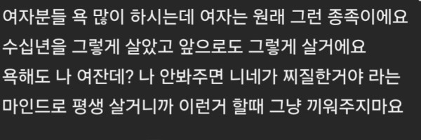 "여자는 원래 그런 종족입니다 그냥 끼워주지 마세요"