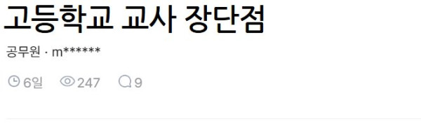 열람중 고등학교 교사 장단점 등급아이콘 레벨아이콘 커뮤관리자 00:03 58