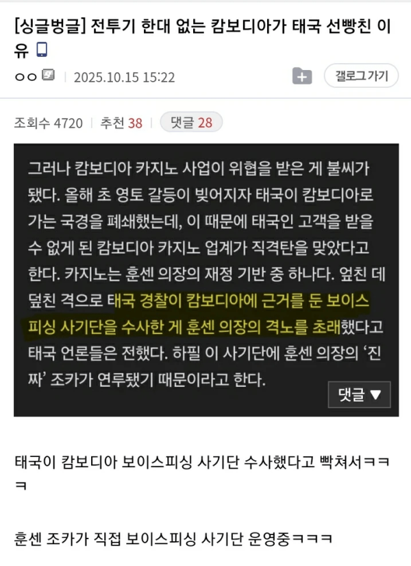 싱글벙글 캄보디아가 태국 선빵친 이유