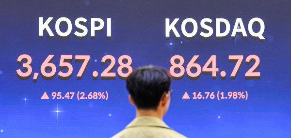 이날 코스피 지수는 전 거래일 대비 18.54포인트(0.51%) 오른 3,675.82에, 코스닥은 2.10포인트(0.24%) 오른 866.82에 개장했다. 2025.10.16 [email protected]