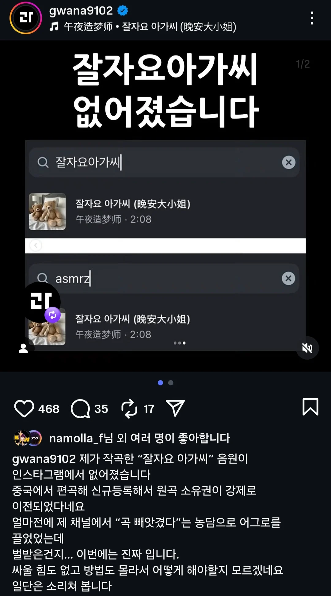 열람중 잘자요 아가씨 음원을 훔쳐간 참깨 등급아이콘 레벨아이콘 커뮤관리자 10.16 101