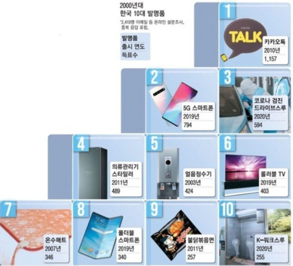 한국발명진흥회 선정 21세기 한국 10대 발명품
