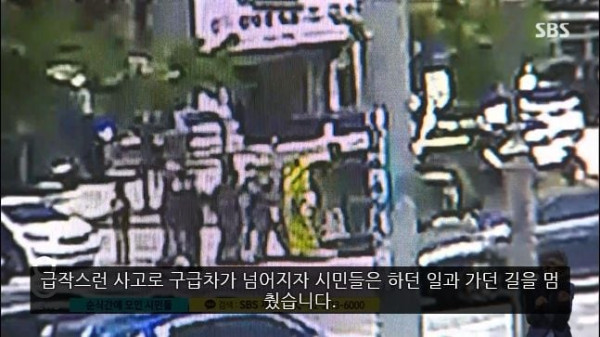 구급차가 쓰러지자 몰려든 시민들이 보여준 기적