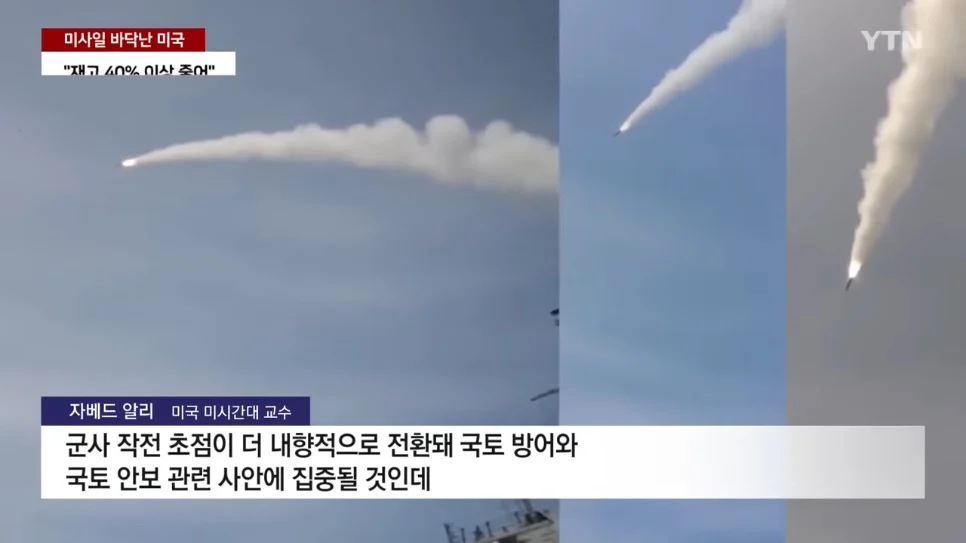 미군은 미사일 재고가 40% 이상 줄었다고 파악합니다.