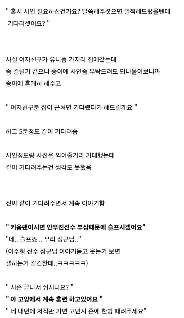 팬한테 싸인해주기 위해 기다려주는 키움 야구선수