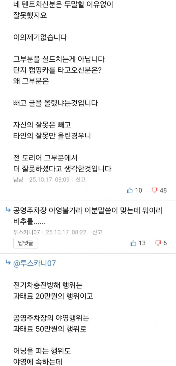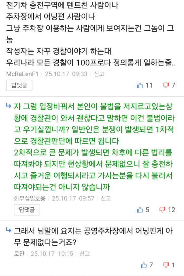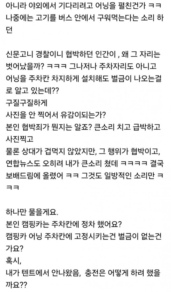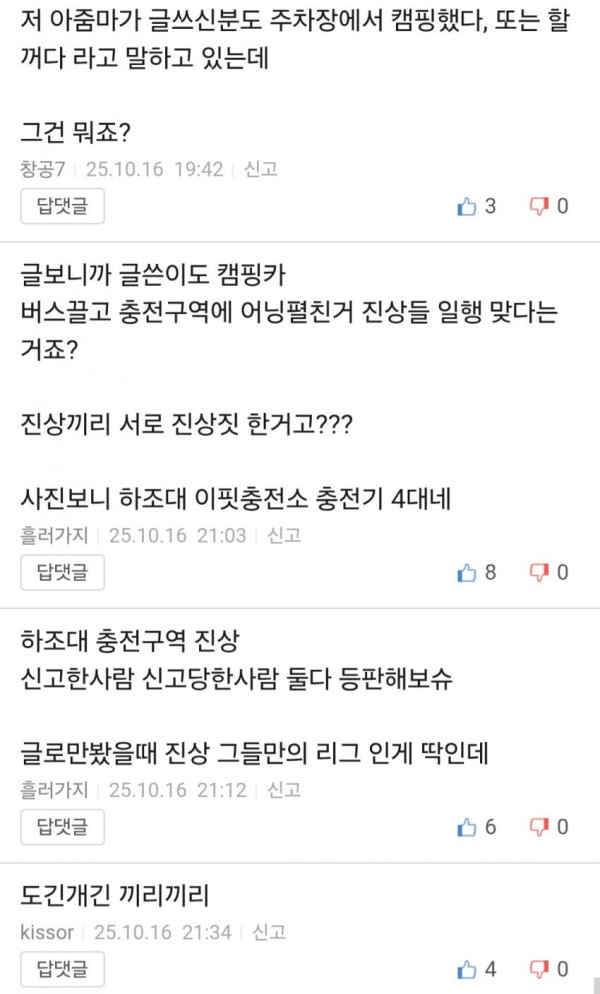 ㄴ요약하면 결국민폐녀 여자는 충전소에 텐트치고 개새끼들 풀어놓고 있었는데