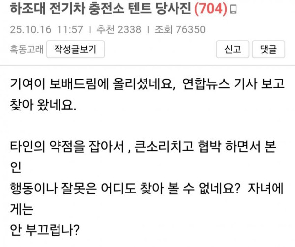 커뮤 보배드림에 이런글이 올라오고