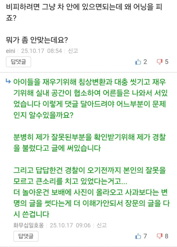 배알이 꼴린 개빠녀가 보배남에게 여기 좁은데 딴데 가라고 하다가 보배남이 발끈해서 경찰부르고 사진찍어 박제함.