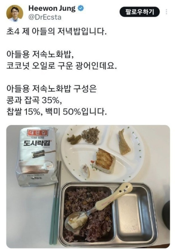'아빠가 의사인 초등학생의 저녁밥' 짤의 진실