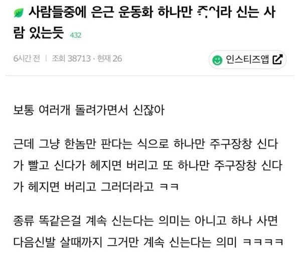 은근 운동화 하나만 죽어라 신는 사람 있는듯