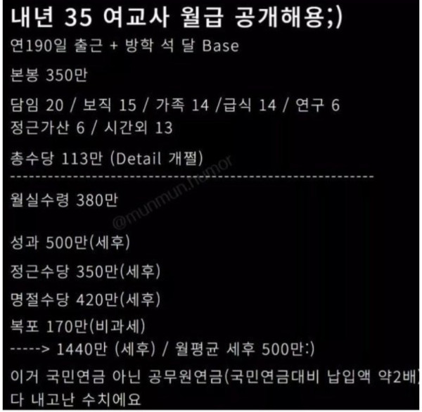 35살 여교사 "월급 공개해용"
