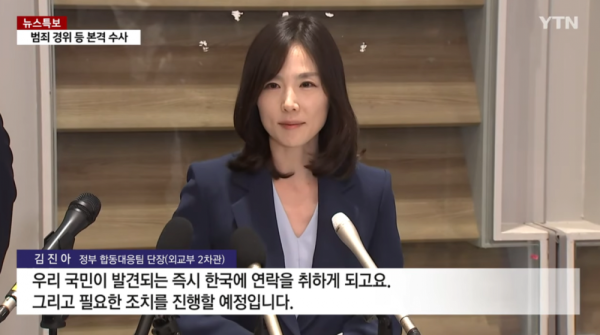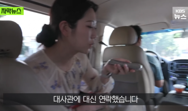 취재진이 김씨를 발견하고 대사관에 연락을하니까