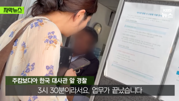캄보디아 탈출에 성공한 한국인 김씨가 한국대사관에 찾아가자