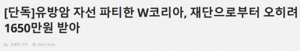 [단독]유방암 자선 파티한 W코리아, 재단으로부터 오히려 1650만원 받아