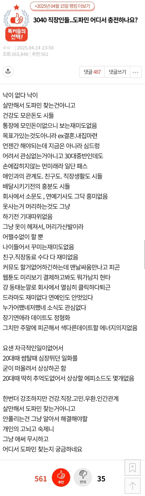 3040 직장인들.. 도파민 어디서 충전하나요?
