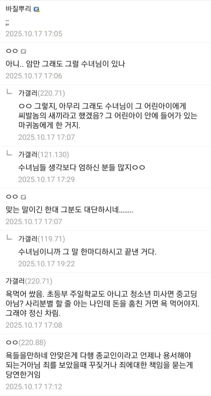 수녀님한테 "야발놈의 새끼"라는 소리 들었던 일