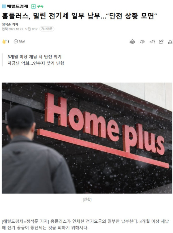 전기세 밀린 홈플러스 ㅎㄷㄷ