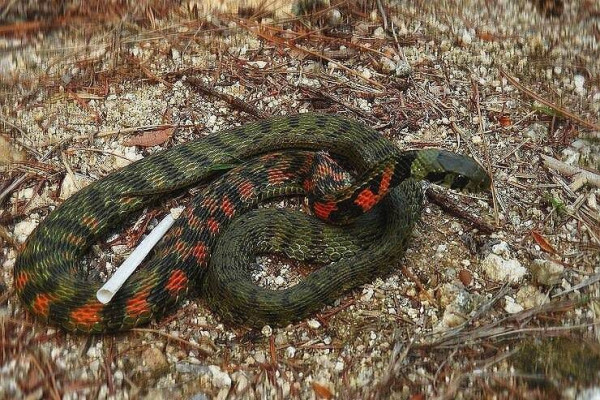 4. 하지만 성격이 매우 온순하고, 사람을 피하고, 독니가 뒤쪽이라 독이 퍼질 가능성이 낮음.