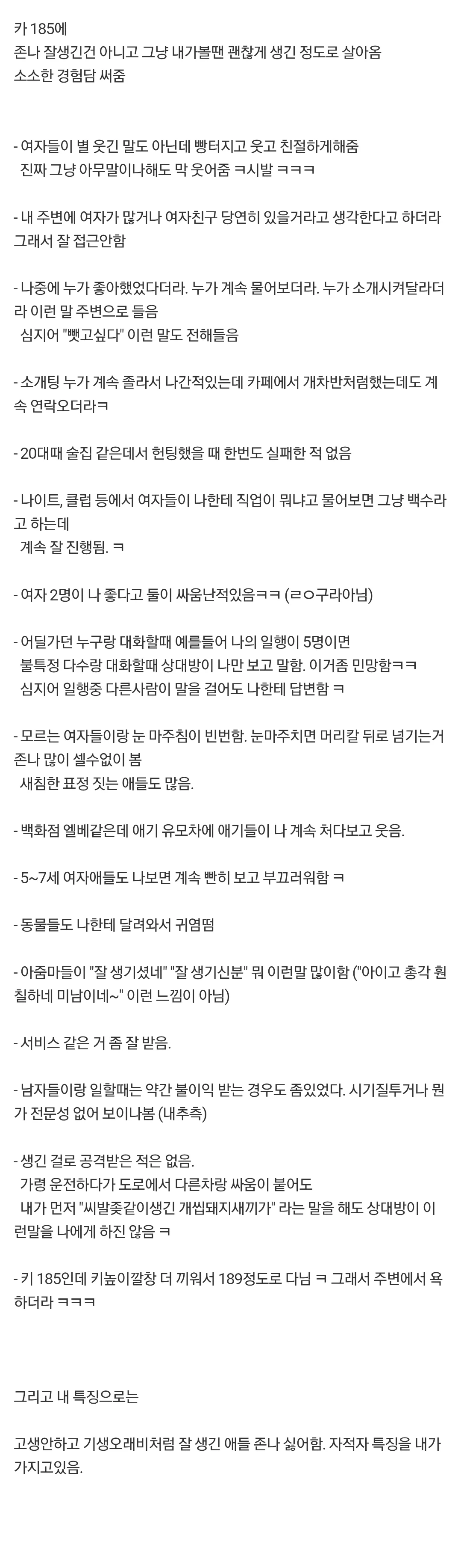 키 185 잘 생긴편으로 살아온 남자 경험담