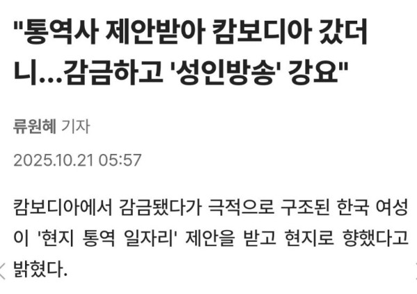 "통역사 제안받아 캄보디아 갔더니…감금하고 '성인방송' 강요" - 머니투데이