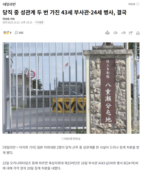 당직 중 성관계 두 번 가진 43세 부사관·24세 병사