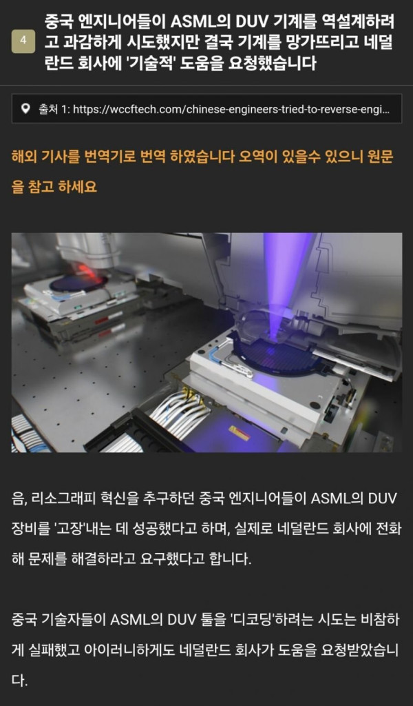 출처 : https://wccftech.com/chinese-engineers-tried-to-reverse-engineer-asml-duv-machines-only-to-break-them/