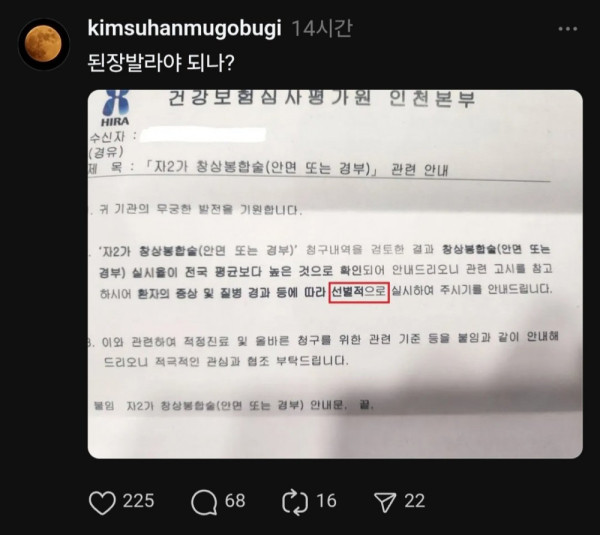 의사가 환자 얼굴,목 많이 꿰매면 받는거