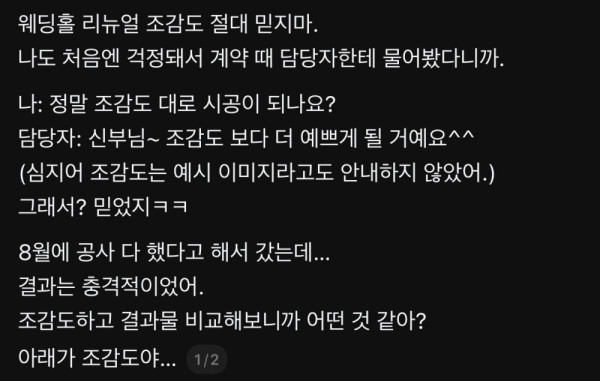웨딩홀 리뉴얼 조감도 절대 믿지마