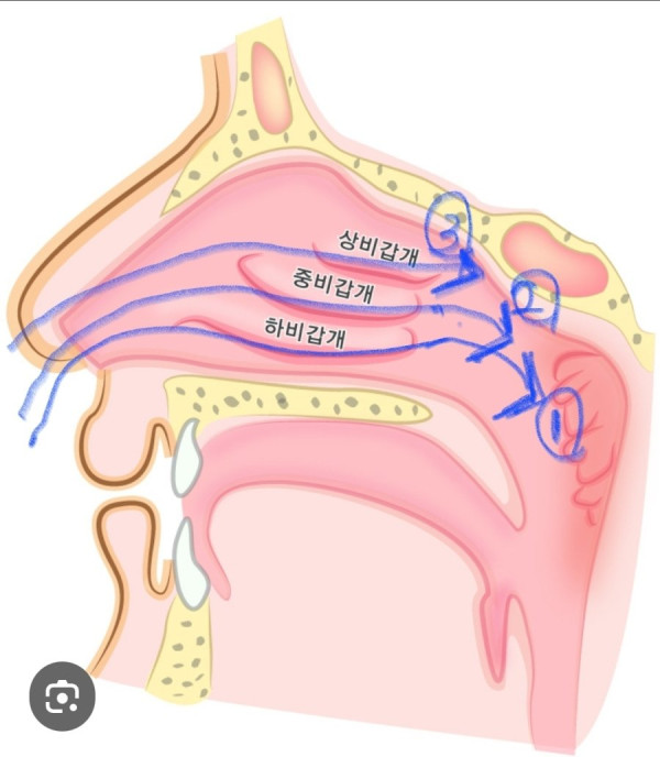 보통 한국의 비염수술은 하비갑개와 옆에 있는 비중격을 건드려 하단 통로를 확 넓혀 버리죠