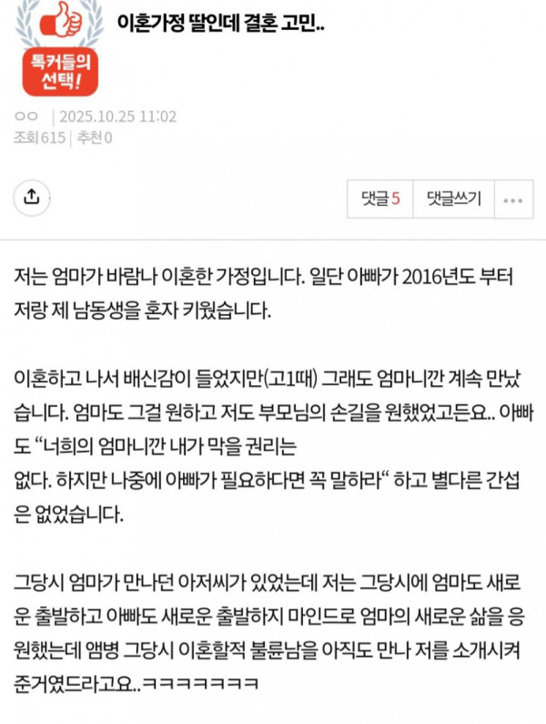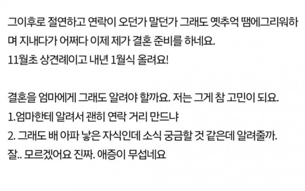 바람피워 이혼한 엄마한테 결혼연락을 해야하는지 고민