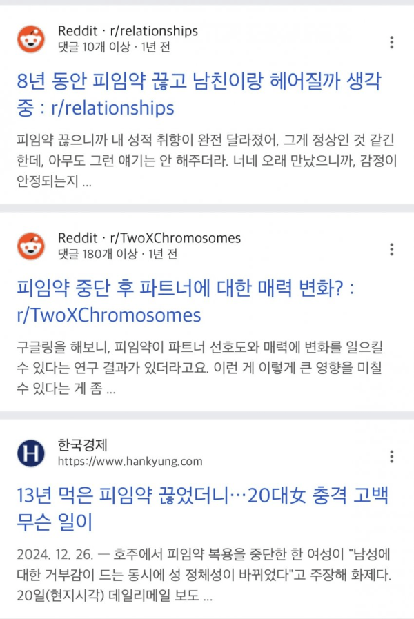 피임약 중단후 호르몬 변화로 파트너에 대한 매력이나 만족도가