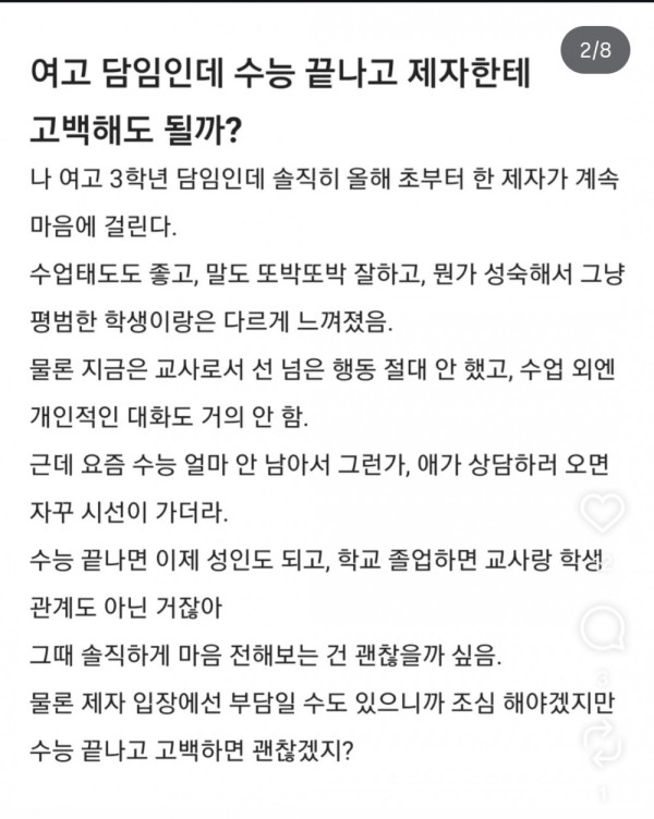 여고 담임인데 수능 끝나고 제자한테 고백해도 될까?