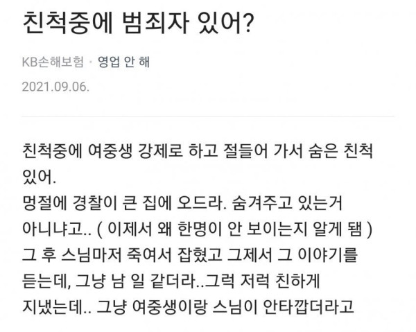 장애인 여중생을 성폭행하거 숨었는데, 숨겨준 사람마저 죽임