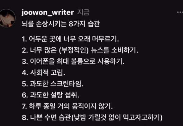 뇌를 손상시키는 8가지 습관