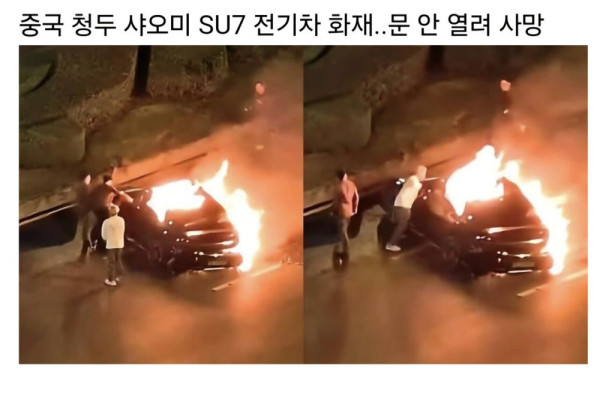중국 청두 샤오미 SU7 전기차 화재..문 안 열려 사망