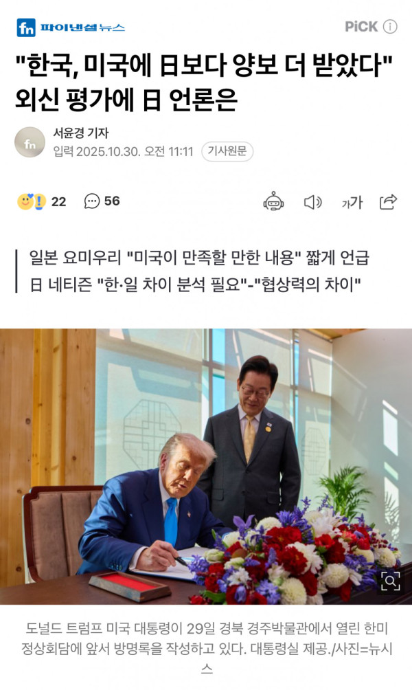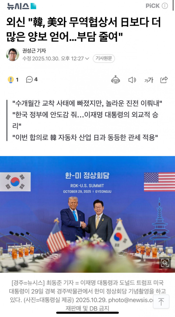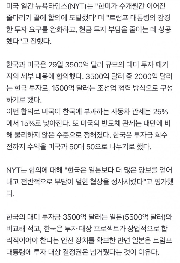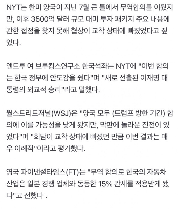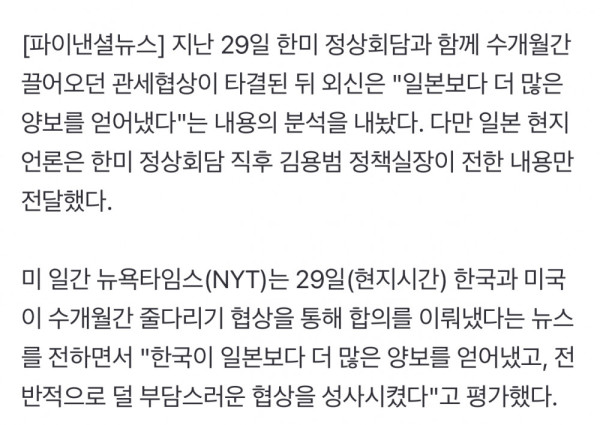 외신 "韓, 美와 무역협상서 日보다 더 많은 양보 얻어