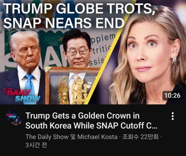 트럼프 금관 받은 거 풍자중인 미국 코미디 토크쇼