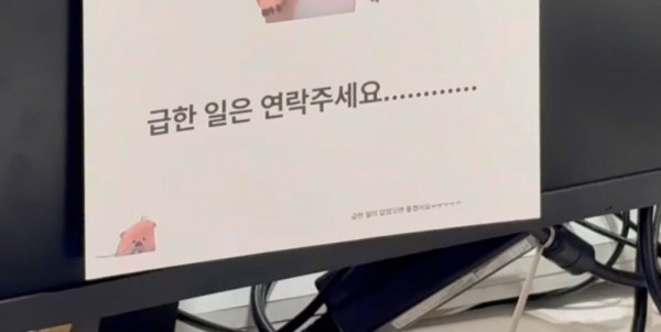 첫 연차 쓴 회사 막내 모니터에 붙여진 사진