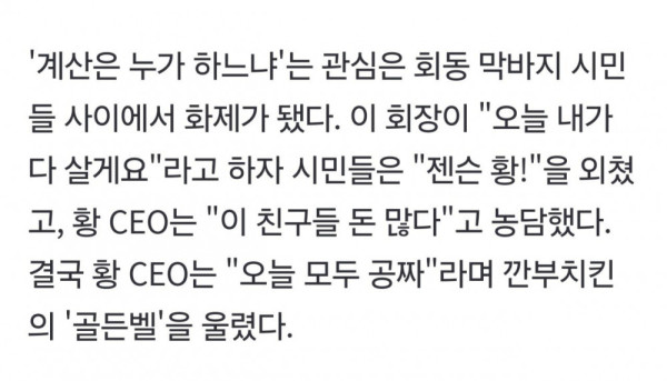 깐부치킨 회동 젠슨황 계산타임 썰 ㅋㅋ
