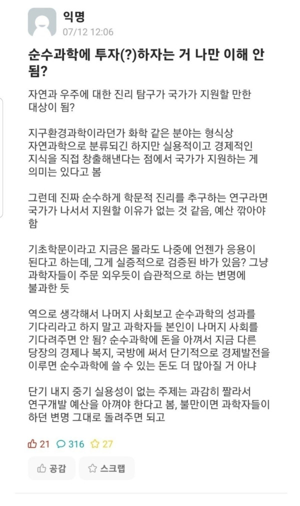 순수과학에 돈 투자하는거 나만 이해 안됨?