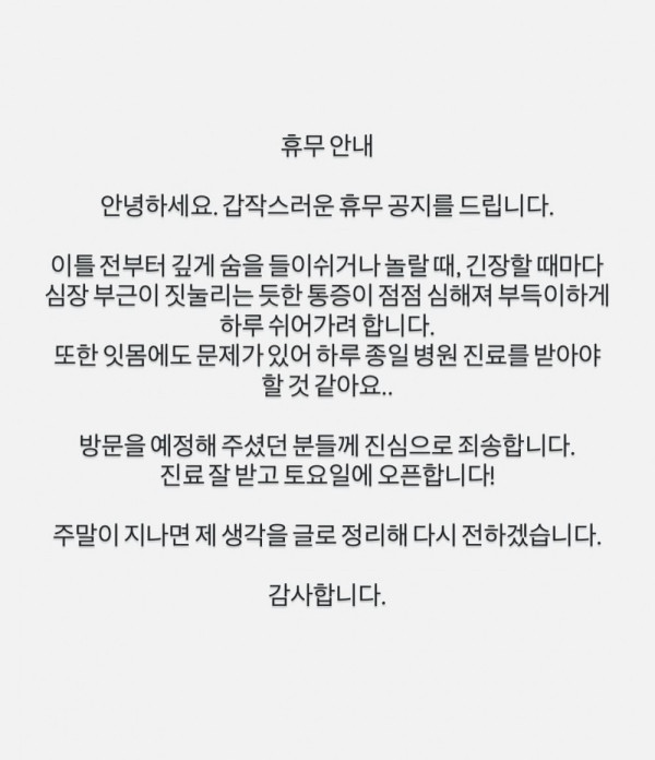 가족 살ㅎ 협박, 딸 ㅌㅁ 협박으로 정신적으로 매장을 운영하기 어렵다고 함, 추가로 본인 건강상 잠시 쉬어간다고 함